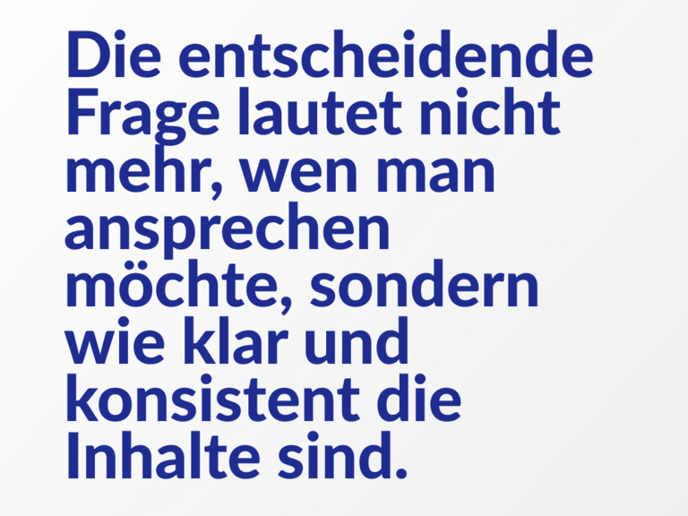 Diese Muster lassen sich nicht mehr sinnvoll über Interessenlisten oder demografische Annahmen abbilden. Für Unternehmen bedeutet das: Die entscheidende Frage lautet nicht mehr, wen man ansprechen möchte, sondern wie klar und konsistent die eigenen Inhalte sind.