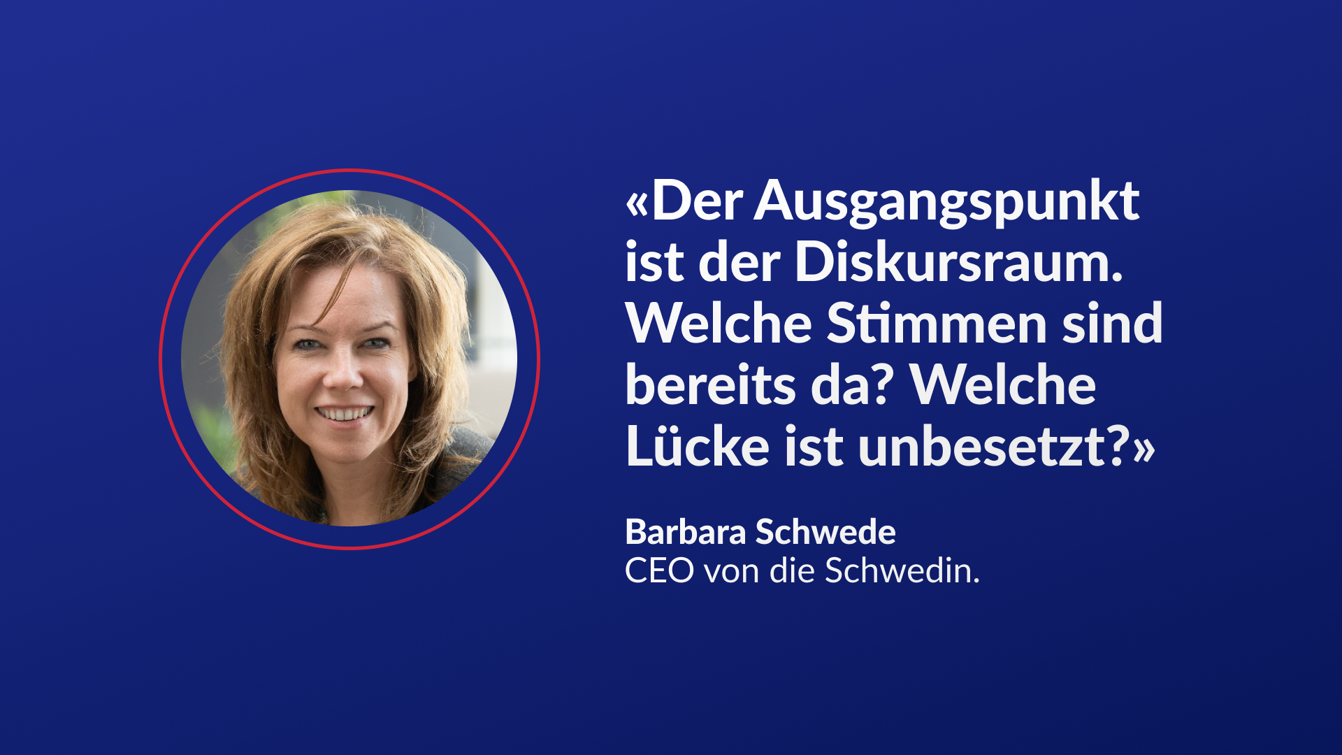 Barbara Schwede ist Gründerin und CEO von Die Schwedin., einer Agentur für digitale Kommunikation mit Sitz in der Deutschschweiz. Als Germanistin und systemische Coach arbeitet sie seit über 20 Jahren an der Schnittstelle von Sprache, Strategie und öffentlicher Wirkung.