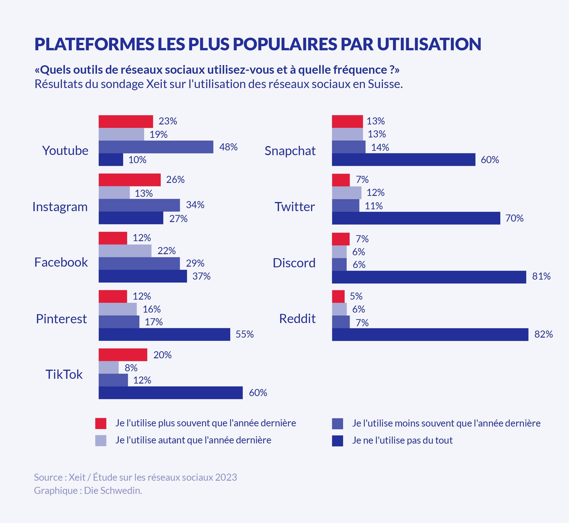 Les réseaux sociaux de prédilection des Suisses sont Facebook et Instagram